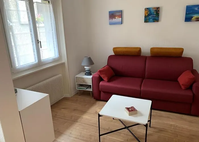 Studio Dans Le Vieux Bourg De St Prex Saint-Prex med 1 sovrum, som ligger cirka 5 minuter till fots från Temple Saint-Prothais, erbjuder enkel tillgång till olika turistattraktioner i närheten. Gästerna kan använda WiFi för både jobb och nöje.